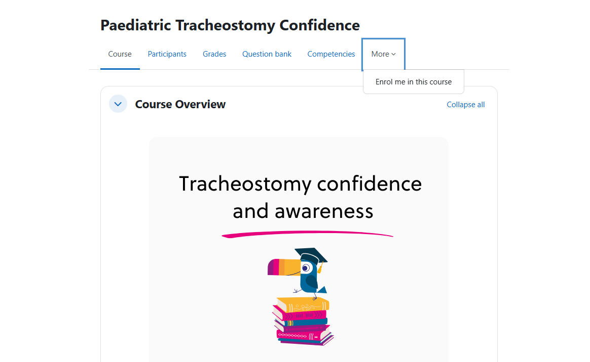 So say we want to enter the paediatric tracheostomy confidence course. We can click on the course and we will open the course page.